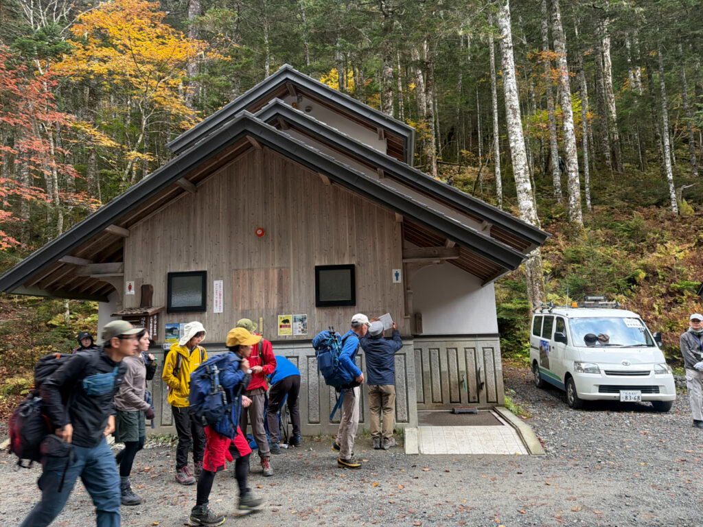 紅葉のベストシーズンで三連休の真ん中のため登山者多く渋滞が発生。