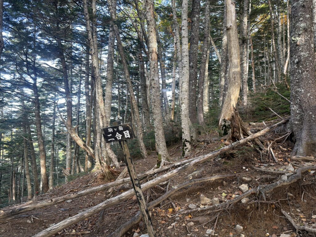 北沢峠から登り始めて約2時間弱、標高2,649mの双児山(四合目)に到着!