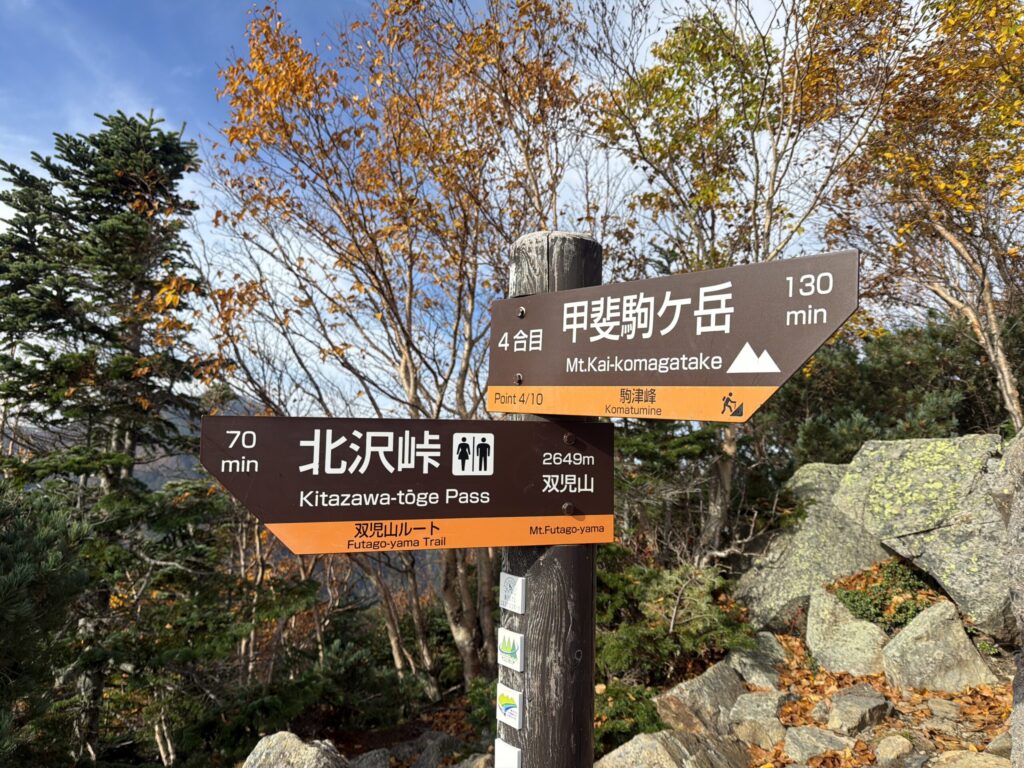 「甲斐駒ヶ岳まで130分」の標識。まだまだ先は長い!