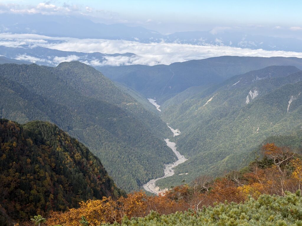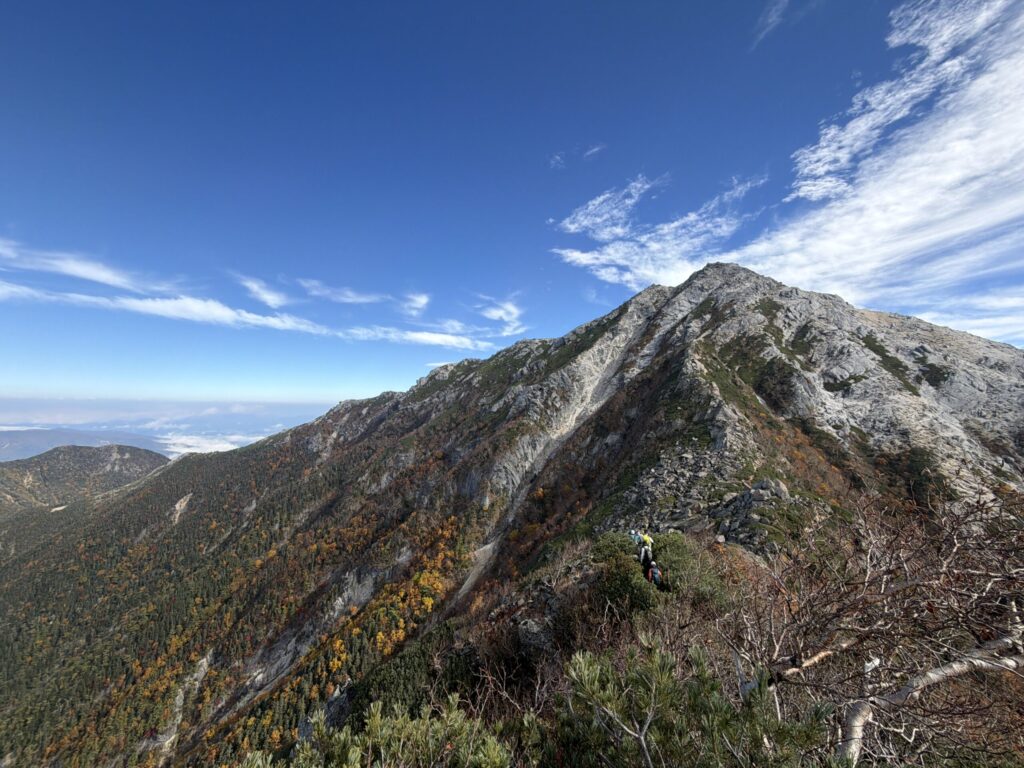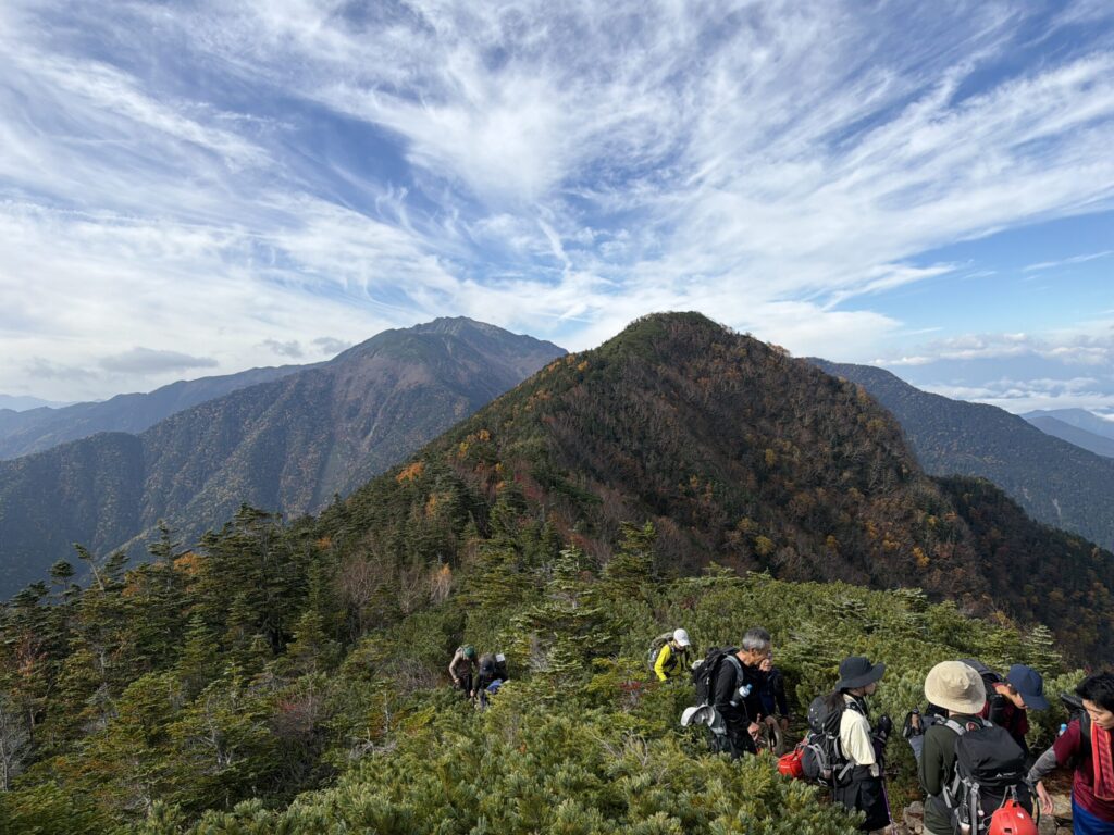 赤や黄色に染まる山肌と青空のコントラストは、疲れを忘れさせるほど。「たまにはこういう季節もいいな」と思わせてくれる山行でした。