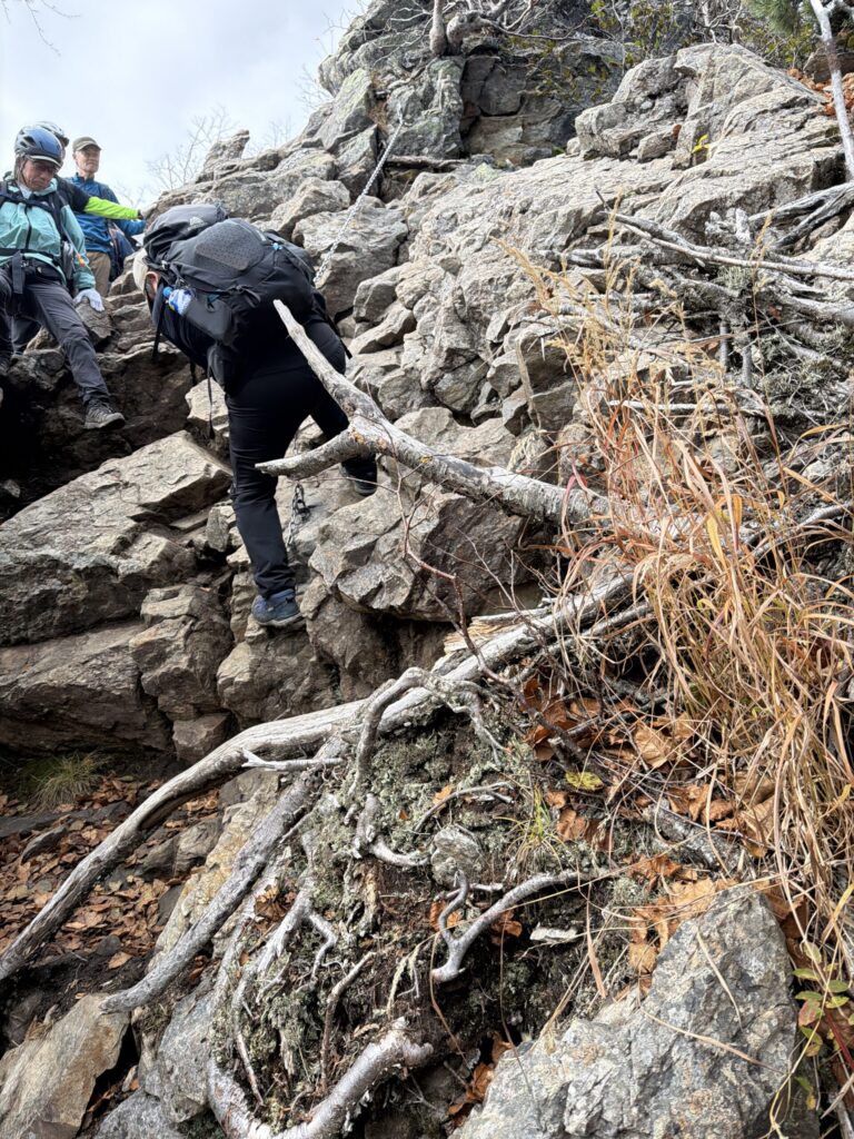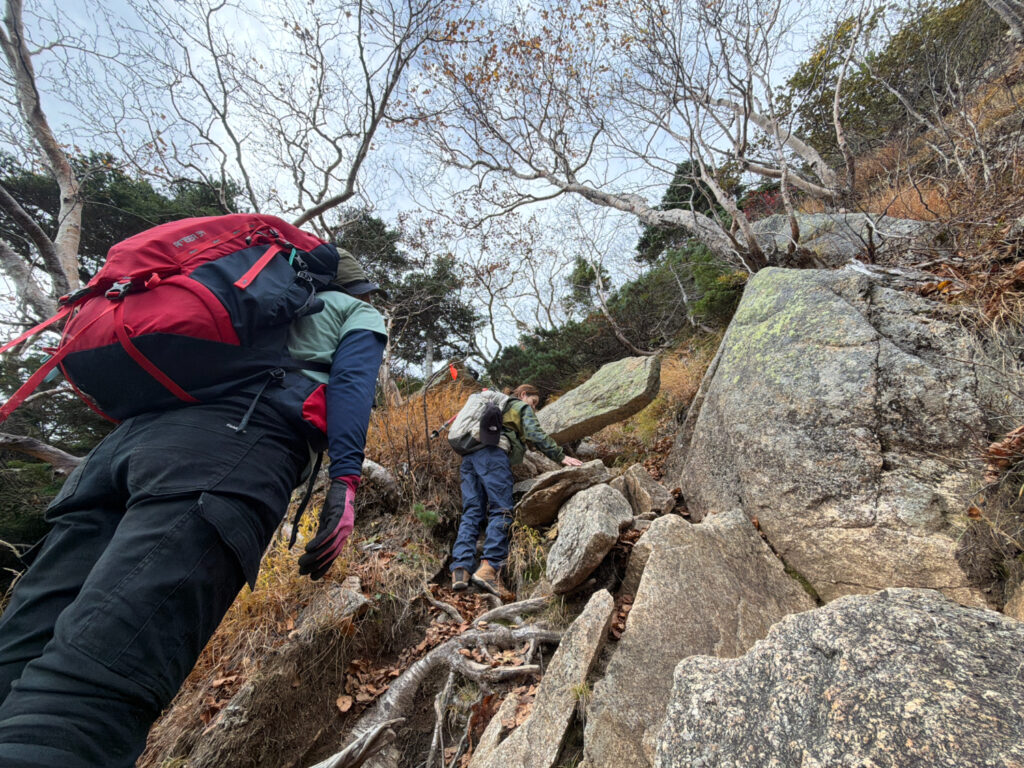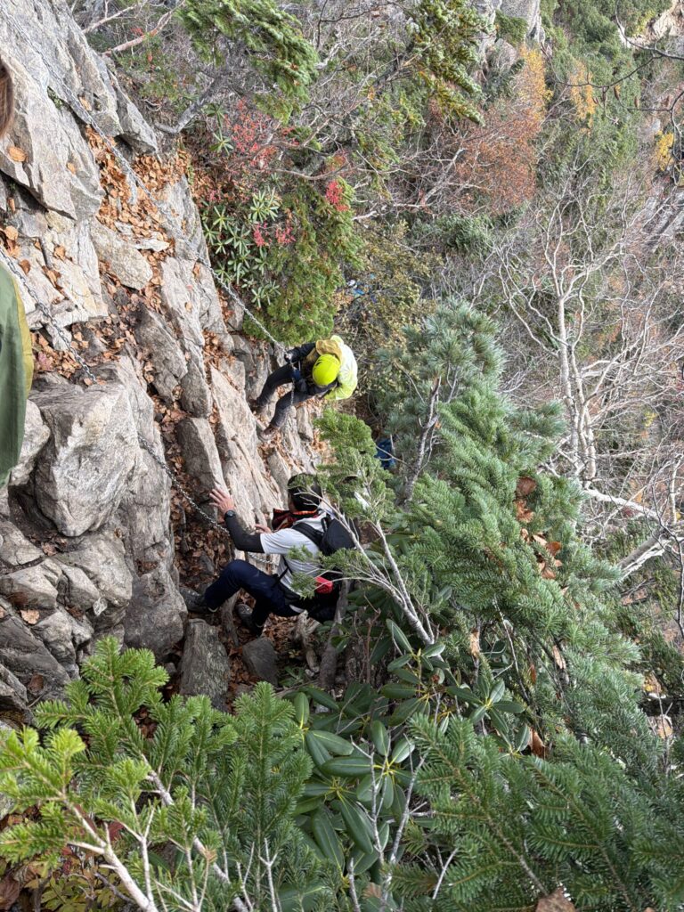 岩場の急登で鎖場などが多く、緊張しながらも楽しく登ります。