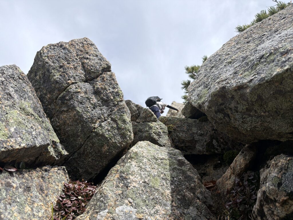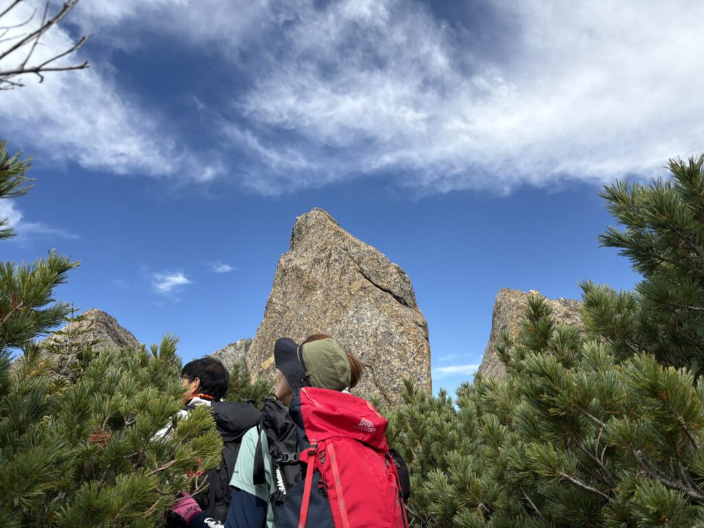 ここから岩場が続くので気が抜けません。あの岩峰を登るのかと思うと、疲れよりも期待の方が勝ります。