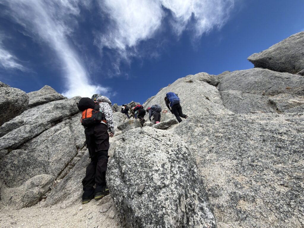 山頂に近づくにつれて風も強くなってきました。あと少しです。