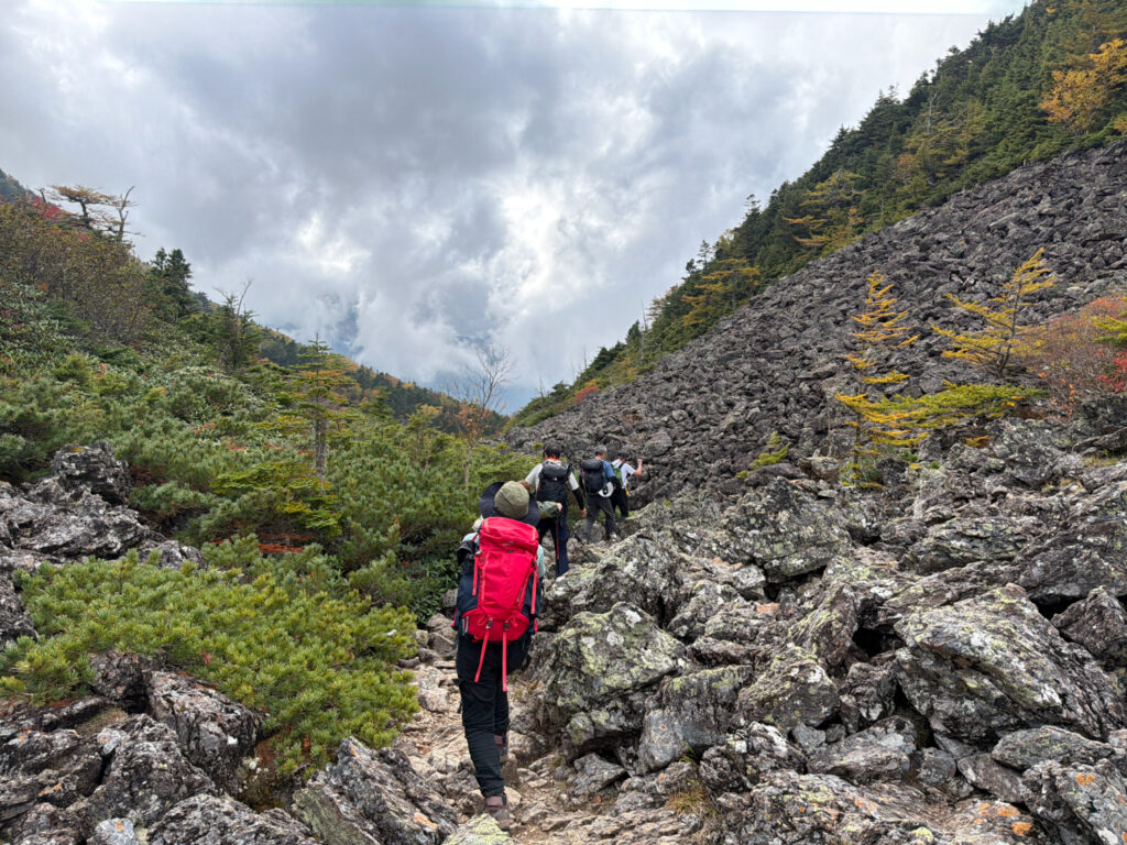 ガレ場は足元の石が不安定で、バランスを取るのに神経を使いました。