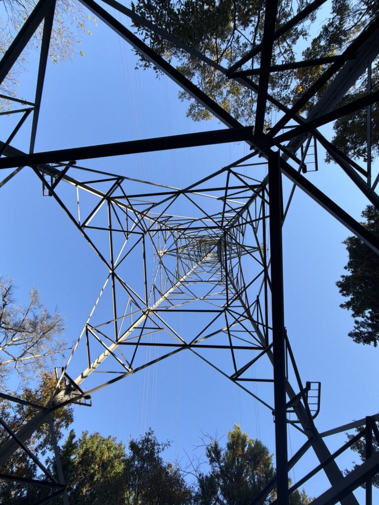 いつもの鈴鹿らしい樹林帯を進むと、鉄塔が現れる。