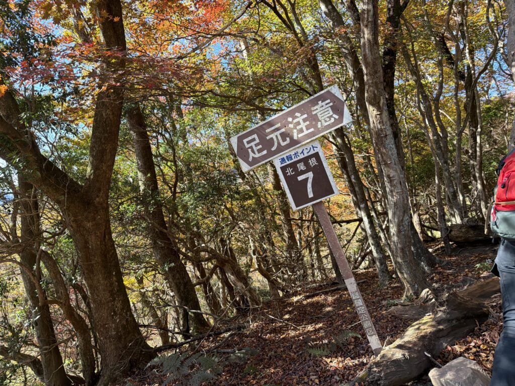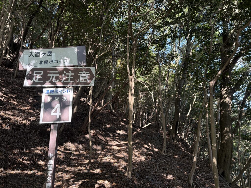 「滑落注意」の看板もところどころにあり、低山といえど油断は禁物。