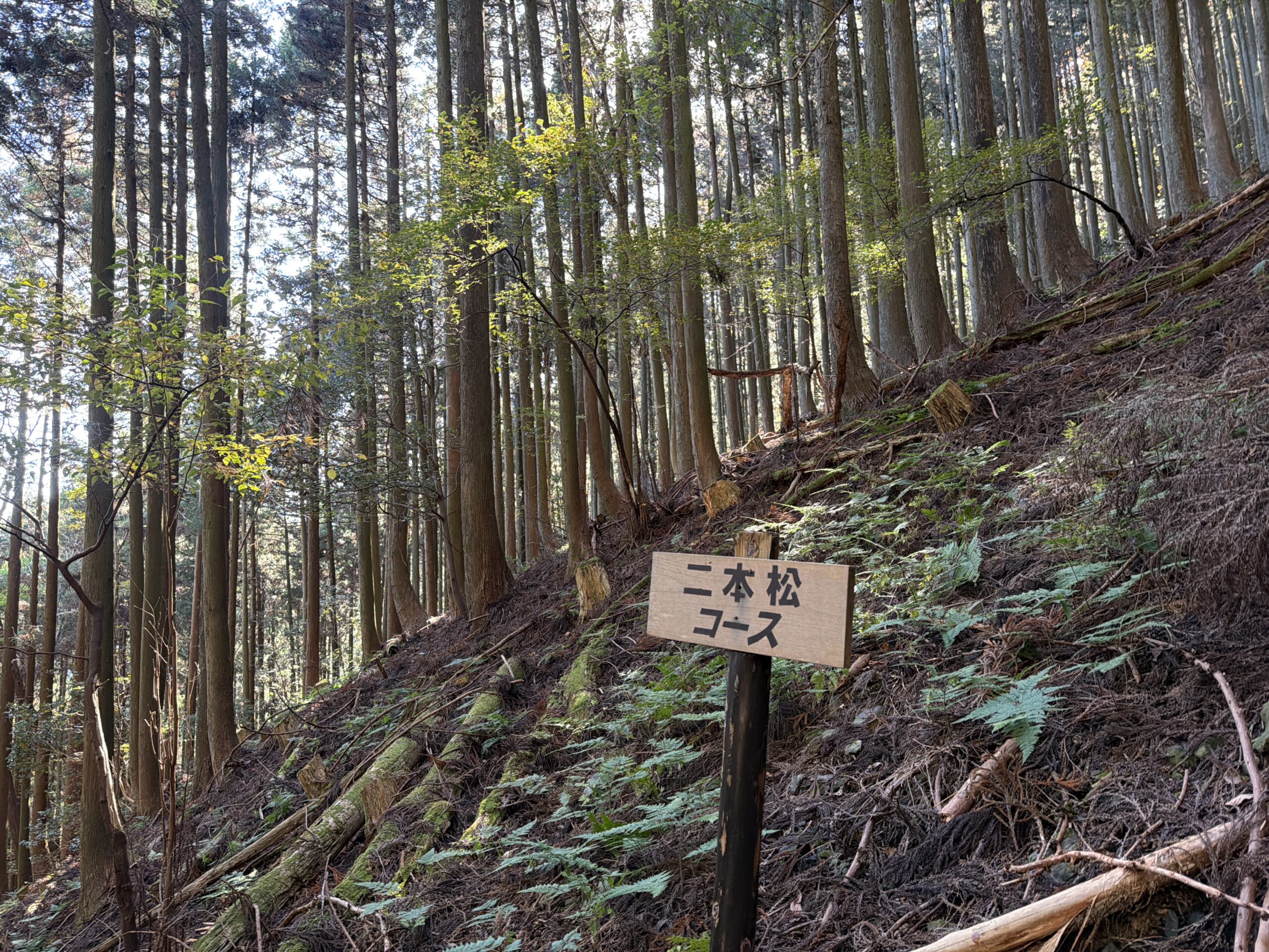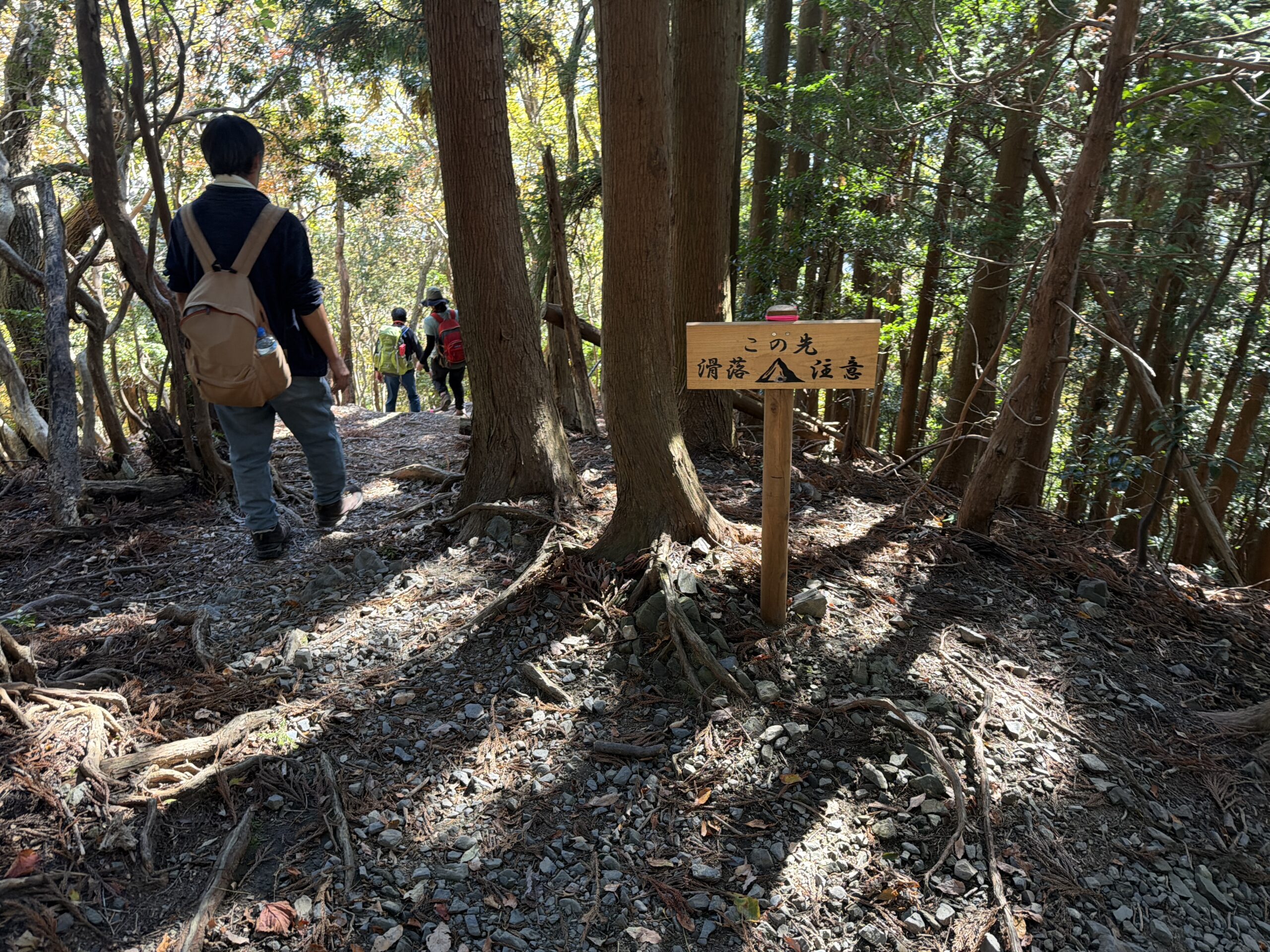 「滑落注意」の看板もところどころにあり、低山といえど油断は禁物。
